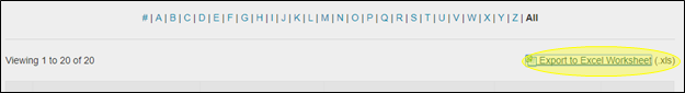 To export jurisdiction information, click the Export to Excel Worksheet (.xls) link on the right-hand side of the Browse Jurisdictions page.