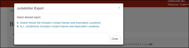 - Export ALL Jurisdictions (includes Contact Names and Associated Locations)