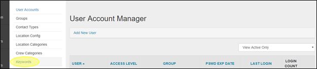 Reel-Scout™ version 10 offers admins the ability to create, edit, and delete keywords that can be used to search the system. Keywords are helpful tools that help users select locations that meet their exact criteria, or for locating sites when the user isn’t quite sure what category that they need to be searching within.