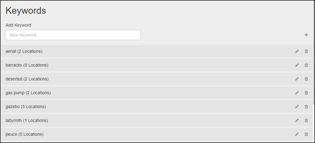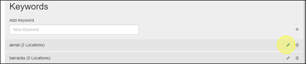 Keywords can be edited by clicking the Edit (pencil) icon to the right of the keyword you want to change.