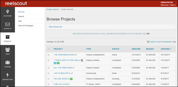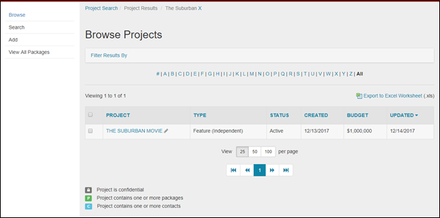 Your search results will be displayed on a new Browse Projects page. Here, you can apply additional filters if required by using the Filter Results By function.