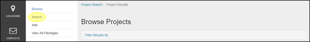 The enter the Project Search page, select Search from the Projects sub-menu.