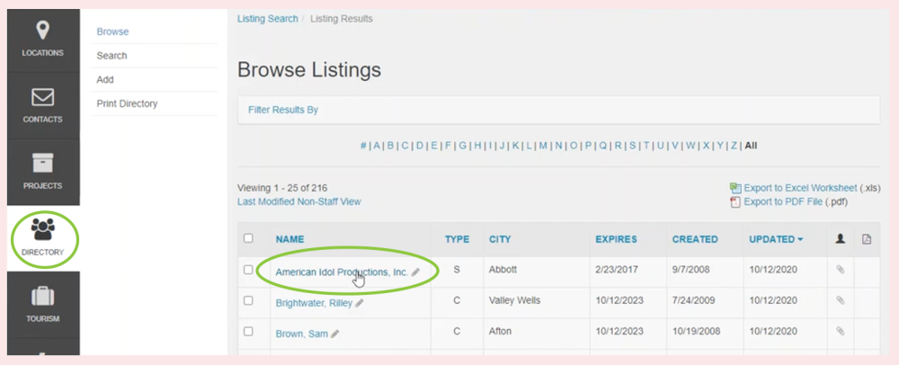 Once found, click on the listing to get to their Listing Details page. Click on the Edit icon on the upper right-hand corner.