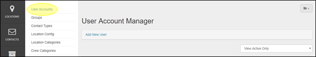 Entering the Admin module will automatically place you on the User Account Manager screen. If you have been in a different Admin sub-menu, click on User Accounts.