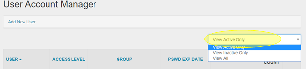 Using a drop-down menu in the upper right-hand corner of the screen, you can choose to View All accounts, View Active Only, or View Inactive Only.
