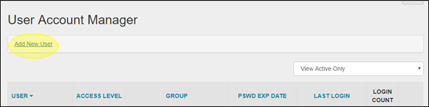 To add a user to your office’s RS10 platform, click the Add New User link at the top of the User Account Manager page.