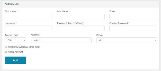 Selecting Add New User will open fields into which you can input the information described above. When you have finished adding the user’s information, click Add.