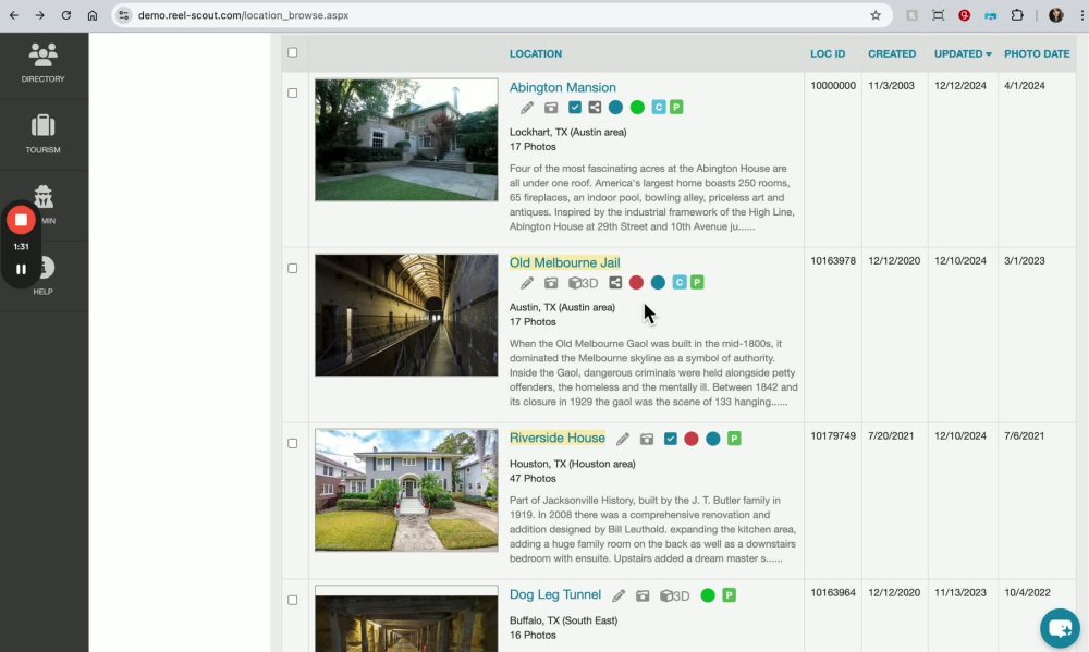 - Star Icon: Indicates the location is film-friendly.