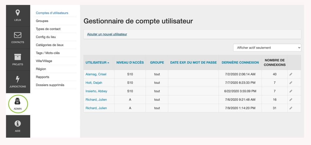 Dans la version 10 de Reel-Scout™, le module Admin offre aux administrateurs système un degré élevé de contrôle sur une variété de différentes fonctionnalités de RS10. On accède au module Admin en sélectionnant Admin dans la barre de menu sur le côté gauche de l’écran.