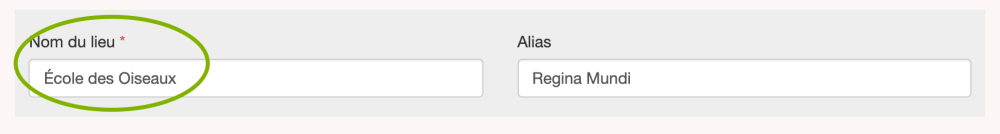 Assurez-vous de cliquer sur ce champ et de changer le nom pour le nouveau nom du lieu, quel qu’il soit. Dans notre exemple, nous avons changé le nom en “École des oiseaux”.