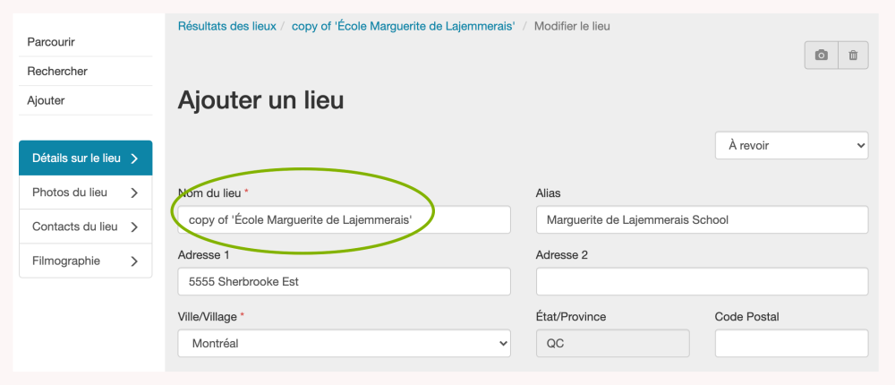 Une fois que vous avez changé le nom du lieu, vous pouvez également modifier tous les autres détails nécessaires pour le nouveau lieu (y compris l’ajout, la suppression ou le classement des photos). Tous ces changements n’affecteront que le nouveau lieu. Le fichier d’origine du lieu restera inchangé.