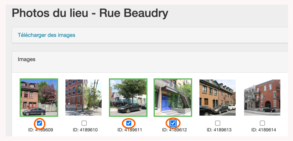 Une fois que vous avez navigué jusqu’à la page Photos du lieu, sélectionnez la ou les photos que vous souhaitez supprimer/effacer. Vous avez la possibilité de supprimer une seule photo ou plusieurs photos à la fois. Les images peuvent être sélectionnées en cliquant sur les cases à cocher. Une bordure verte apparaîtra autour des photos choisies pour mettre en évidence que vous les avez sélectionnées.