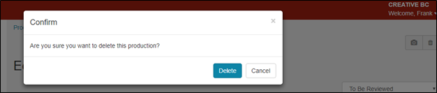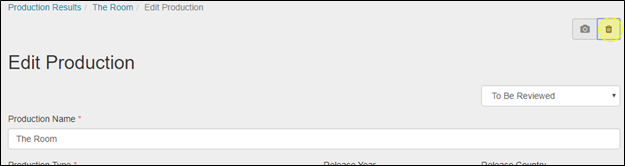 Sur la page Modifier la Production, sélectionnez l’icône Supprimer (corbeille). L’icône Supprimer est située sur la barre d’outils dans le coin supérieur droit de votre écran.