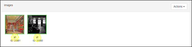 Une fois que vous avez navigué jusqu’à la page Photos de Plateau de la Production, sélectionnez la ou les photos que vous souhaitez supprimer/effacer. Vous avez la possibilité de supprimer une seule photo ou plusieurs photos à la fois. Les images peuvent être sélectionnées en cliquant sur les cases à cocher. Une bordure verte apparaîtra autour des photos choisies pour mettre en évidence que vous les avez choisies.
