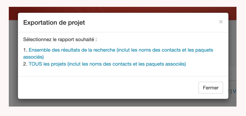 2. Boîte de dialogue d’exportation du projet