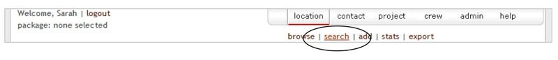 Click search option under the location from the menu list. Note that clicking the LOCATION button itself on the gray bar defaults to the browse option.