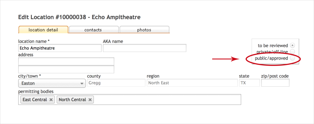 Here’s how to approve a location that has just been added by staff or submitted by the public: