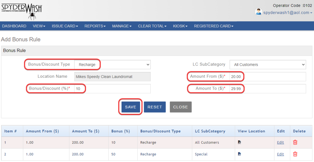 In this section we will go over how to add a reload bonus for your loyalty card customers.