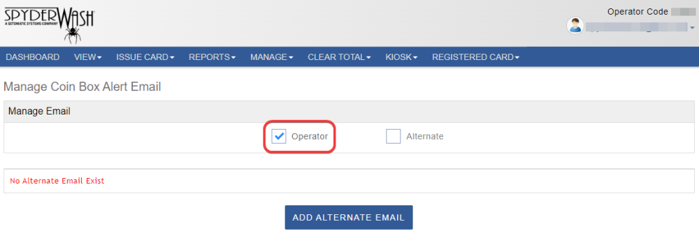 By Default, the Operator is selected, but as you can see, you can add an alternate email address to receive the alerts.