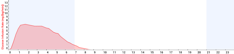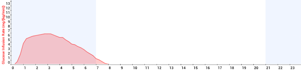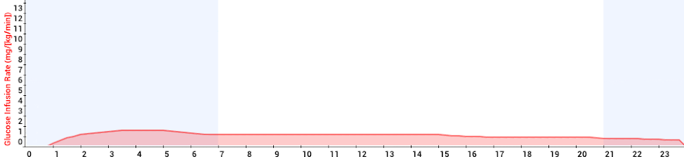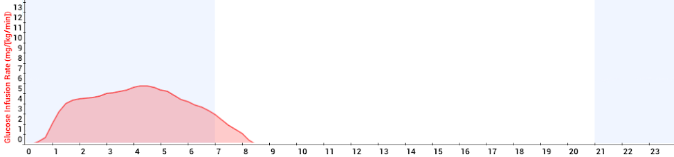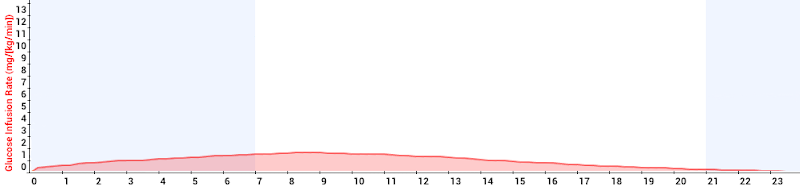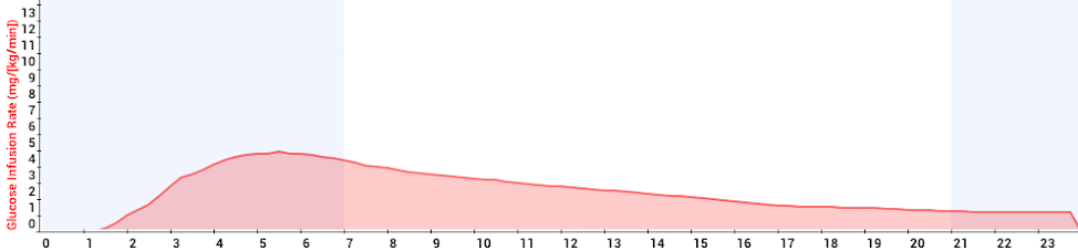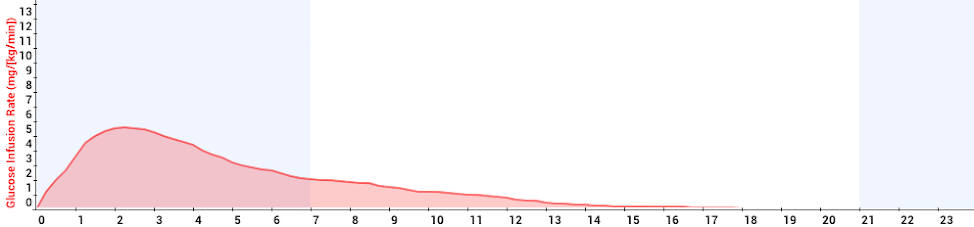 The following charts present the insulin action curves over time (Glucose Infusion Rate) calculated for 0.4 IU/kg or 30 IU for 75 kg weight. These graphs are displayed in the Graph screen for every entry containing insulin data the Weight is entered in Settings/Personal/Weight.