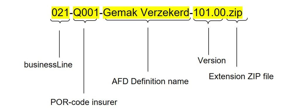 Composition of the file name for the zip file, containing the complete AFD-definition UIV or AFD-definition Registratie Polis: