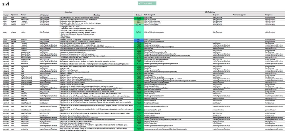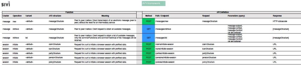 The SIVI API-framework function overview contains two documents. One document is based on the Category Functional and contains all the functional functions of this framework. The other document is based on the Category Technical and contains all the technical functions of this framework. Each row in the document describes a complete API function. Every API function is divided in a Function section and an API Definition section.