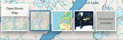 You can change the basemap by clicking on the small map square in the bottom left corner of the map. Basemap options include OpenStreetMap, OpenTopoMap, Sentinel-2 cloudless, or no background.