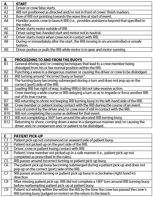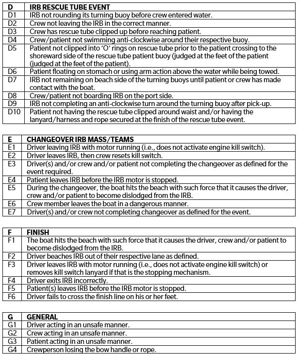 DISQUALIFICATION CODES FOR IRB EVENTS