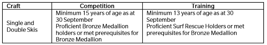 (c) The minimum ages and qualifications for training/usage of SLSA owned Surf Skis is as follows: