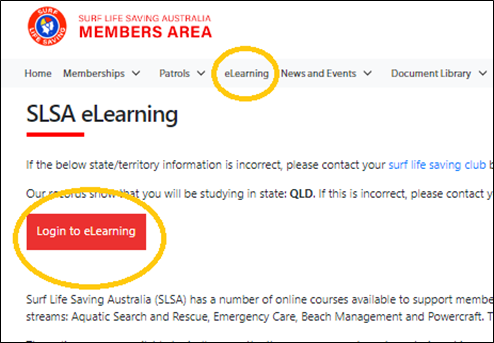 - Navigate to the SLSQ Hub. This can be found via the “Login to eLearning” link on the SLSA Member Portal.