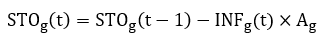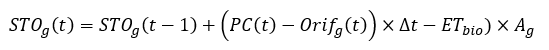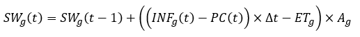 Then, the amount of water stored in the ponding storage layer is calculated using a continuity equation:
