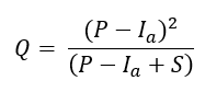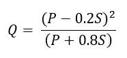 Hydrology of Runoff Equation, Q = (P-0.2S)/(P+0.8S)