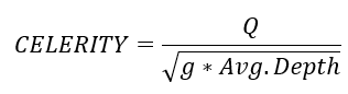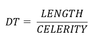 Celerity ranges from 1.1 to 1.6 times the average velocity. Using the above criterion, it is found that, for time steps used in convolution (hydrograph commands) the length cannot be very short.