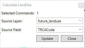 - Select catchments whose landuse will be updated. Please select at least one catchment before clicking the tool button to open the tool window.