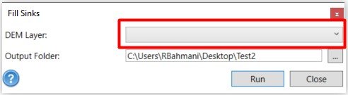 1. In the opened tool interface, locate the dropdown menu in front of the DEM Layer option.