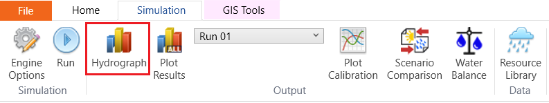 Select the NasHyd on the Schematic view. Then, click Hydrograph button under the Simulation tab to view the results.