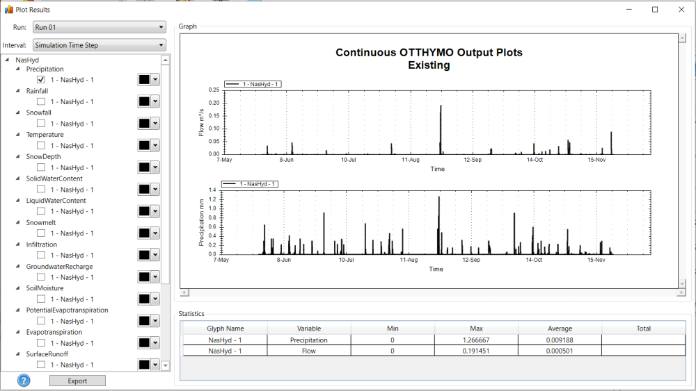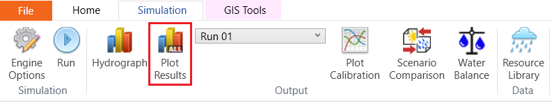 Keep the NasHyd selected on the Schematic view. Then, click Plot Results button under the Simulation tab to view the results.
