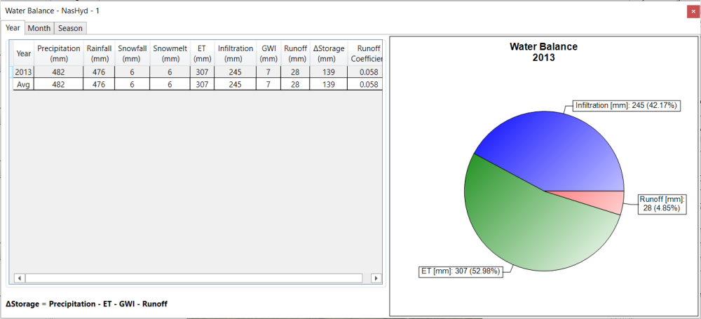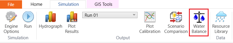 Water Balance button gives a summary of the water balance. Multiple scenarios can also be compared.