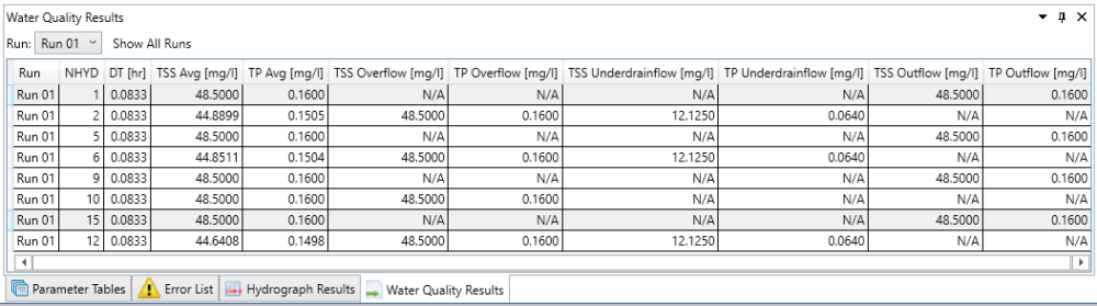 This output feature allows the user to view the actual water quality results in Water Quality Results window found at the bottom of VO.