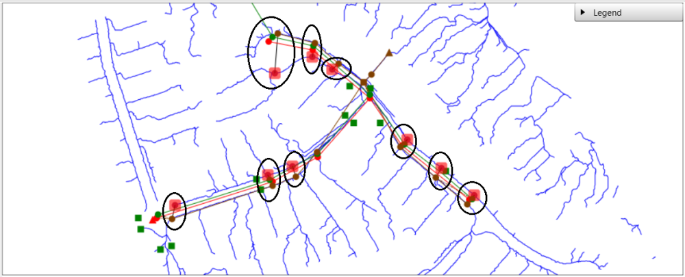 Then click on the flow path to add a delineation node. It is recommended to add the delineation node to be perpendicular as much as possible to the flow path. To see the connection line between the major node and the delineation node, make sure the layer DelineationNodeLine under the Support layer is checked on in the map layer tree.