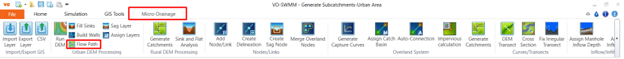 1. Switch to the “Migro-Drainage” tab within the VOSWMM software.