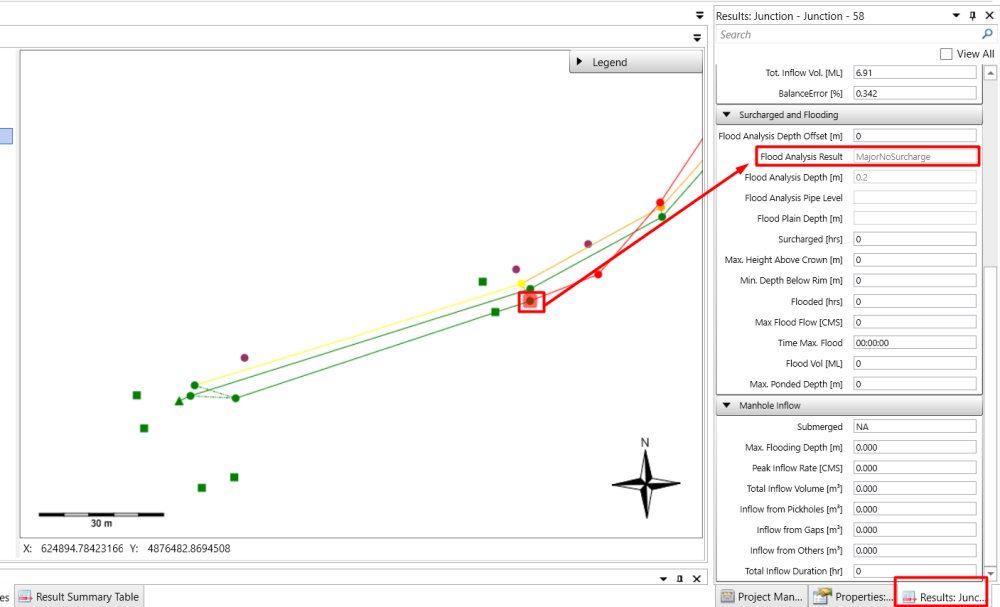 Click on the Surcharge and Flooding Analysis tool from the toolbar. In the Node Tab, assign the following parameters: