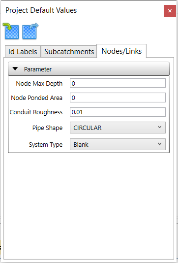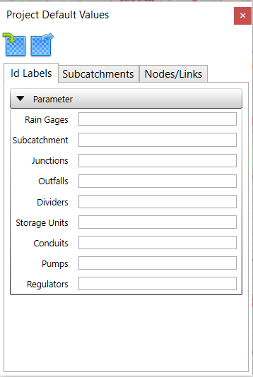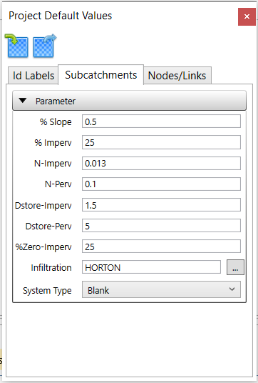 In the Subcatchments tab, set up the default parameters to be used for subcatchments.