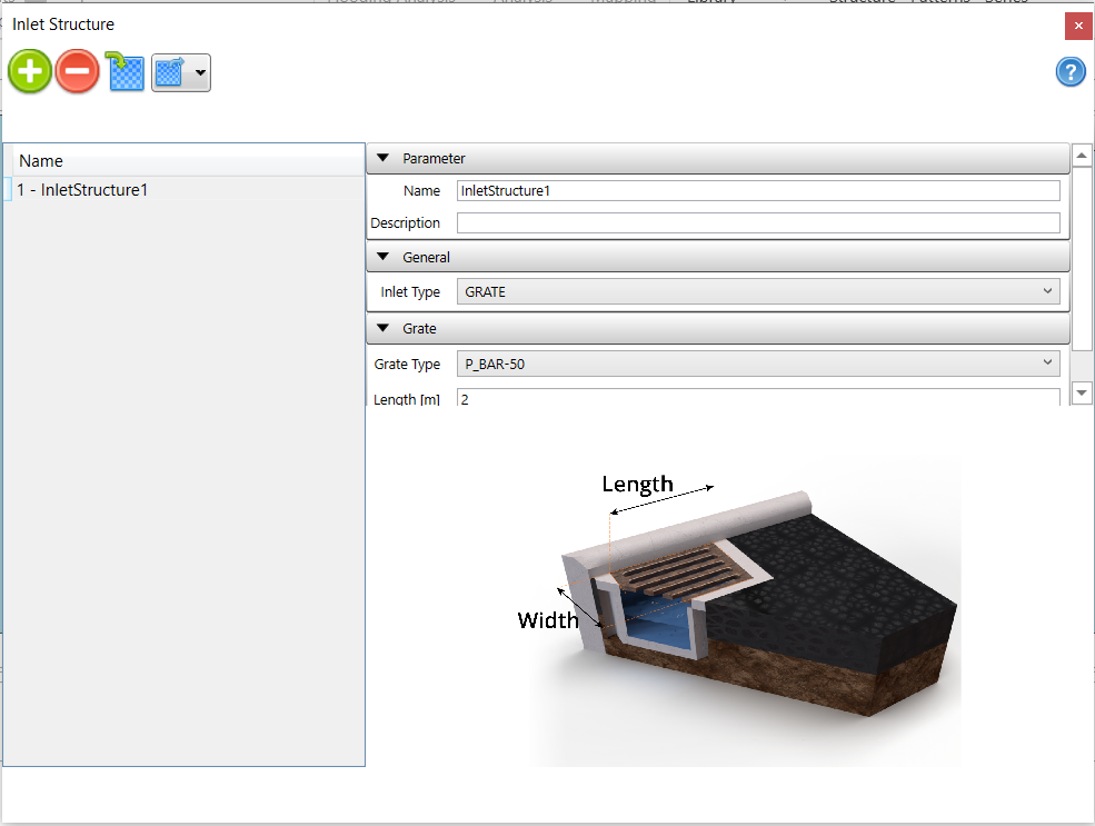Click the Inlet Structure button to open the Inlet Structure window. Please note that Inlet Structure is only activated for SWMM5.2 engine or higher.