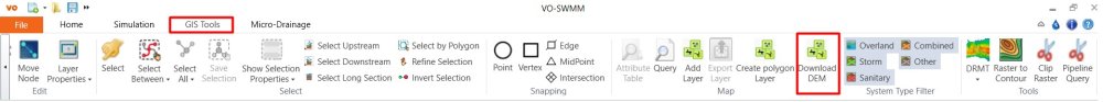 To download a Digital Elevation Model (DEM) file, navigate to the GIS tab and locate the “Download DEM” option.