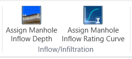 The tools in the Inflow and Infiltration section of the Micro-Drainage toolbar are used to Assign Manhole Inflow Depth and Assign Manhole Inflow Rating Curve.