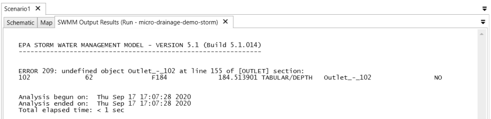 If a run has errors, the errors of the model will be listed to the Output Results