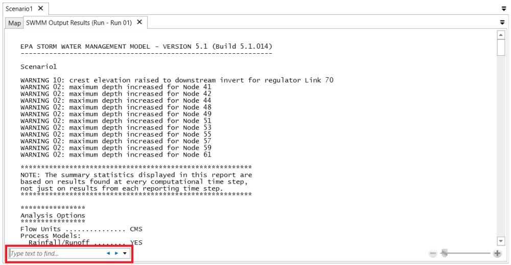 If a run is completed successfully, click the Output Results button to open a new tab and view the model output result file in a text-file format.
