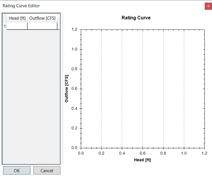 Rating curve that relates outflow to either depth or head.