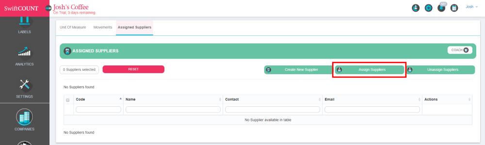 Assign suppliers to a product to create purchase orders. You can then receive your merchandise from SwiftCount to update your stock levels.